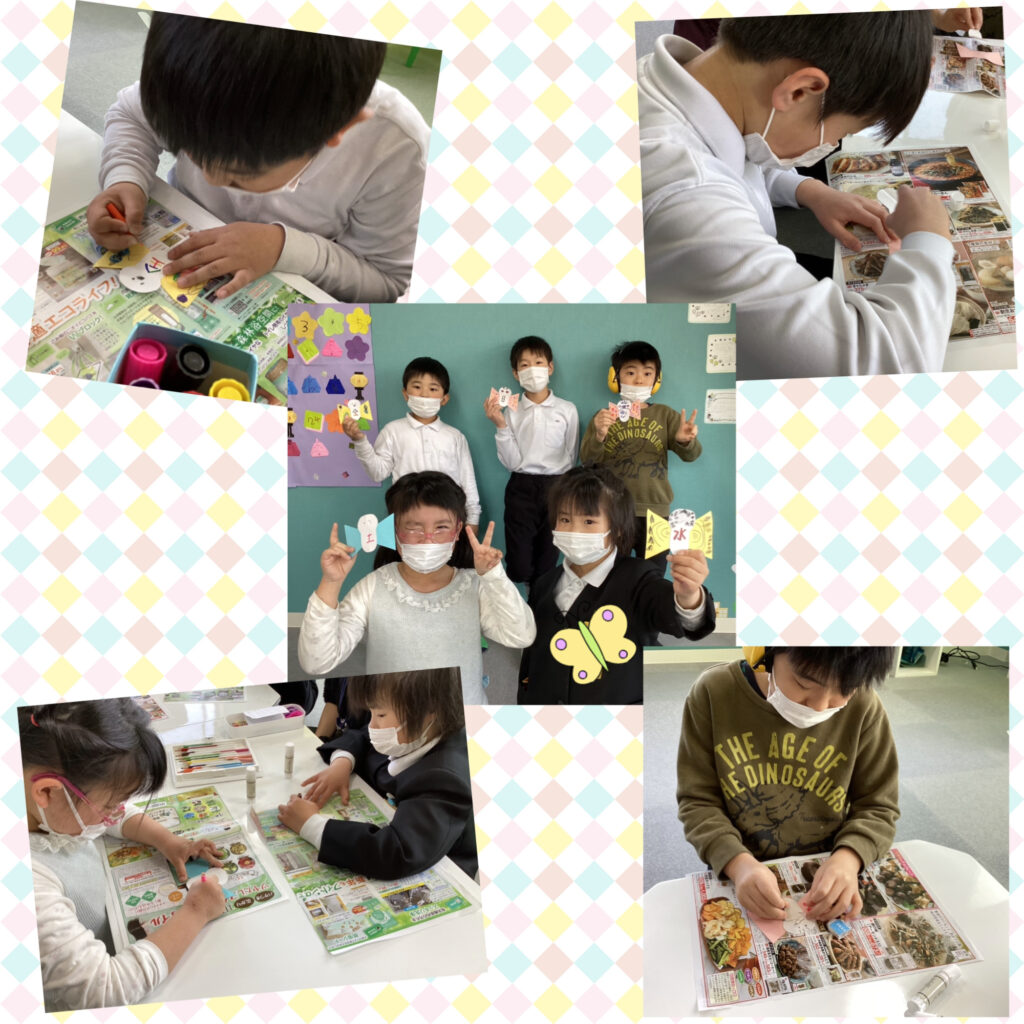 蝶々の形で羽には、自分たちで好きな模様を描いてみよう!
