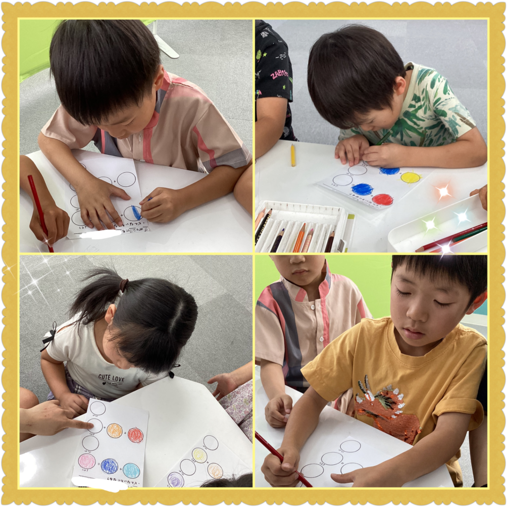 「当たった〜」という子や、「これとこれで〇〇色になるんや〜」と新たな発見をした子も🔎✨