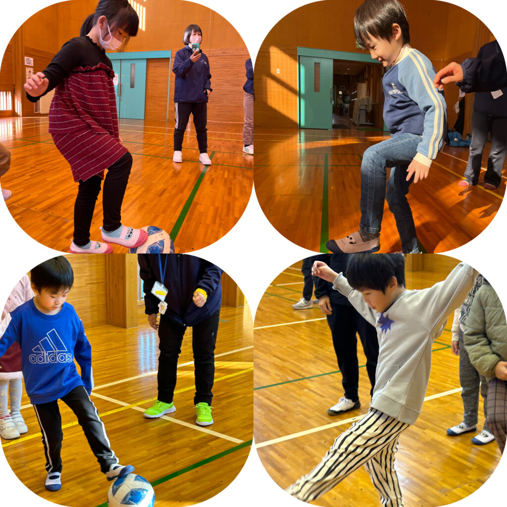 今回体育館でサッカー教室でボールを止めたり、蹴ったり練習した後、チームで戦いましたよ( ^∀^)