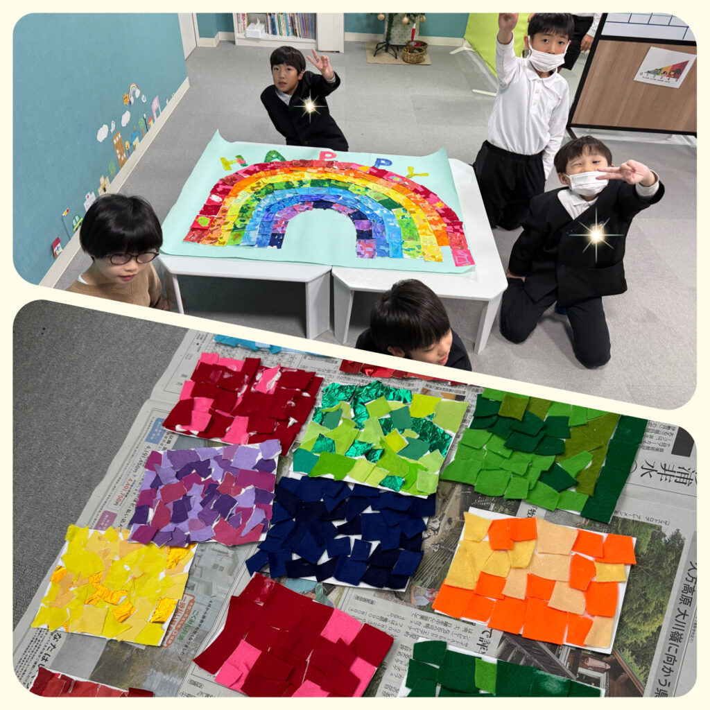 今回は、みんなで虹の制作をしました😆